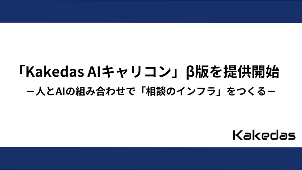 Kakedasでは、AIの利便性や学習力、人が持つ対話の力、双方を組み合わせることで「相談のインフラ」を構築していきたいと考えています。