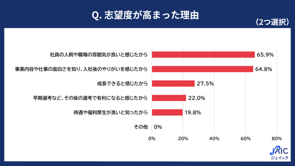 ・自身が勤める会社を好きであることが、採用担当者から伝わったときに志望度が上がった